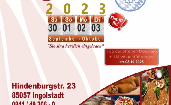 Wir laden Sie zu unserem traditionellen Familienfest von 1-4. Mai ein. Auf dem Gelände an der Hindenburgstraße 23 warten jeweils von 12 bis 20 Uhr wieder Köstlichkeiten aus der türkischen und pakistanischen Küche auf unsere Besucherinnen und Besucher. Kinder können sich auf Hüpfburgen austoben. Auf Wunsch werden auch Besichtigungen der […]